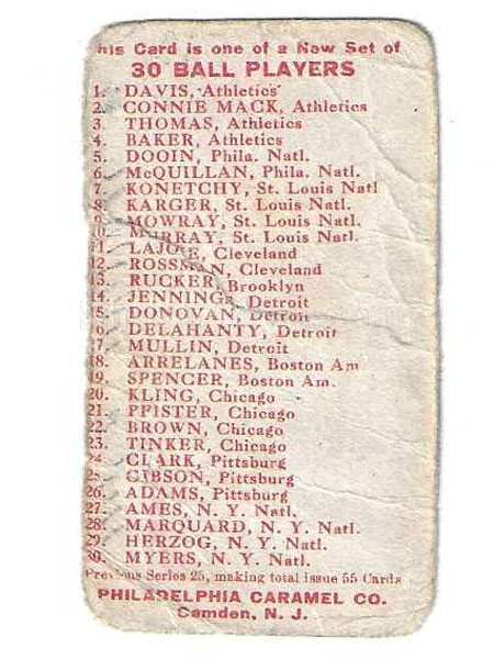 Here is an original card from 1910 edition of Baseball Cards produced by the Philadelphia Caramel. These were inserted into packs of candy to promote the caramel. These feature an image in the center of a player on the front with the name and team noted below their picture. This one shows Rube Marquard of the New York Giants. He was elected into the Baseball Hall of Fame in 1971. Richard William "Rube" Marquard (October 9, 1886 – June 1, 1980) was an American left-handed pitcher in Major League Baseball in the 1910s and early 1920s. He achieved his greatest success with the New York Giants. He was the NL wins leader (1912), the NL strikeout leader (1911) and he Pitched a no-hitter on April 15, 1915. It has lots of damage including a substantial tear to the center but is real and priced according to the condition. It comes in an acid free holder for display and preservation.