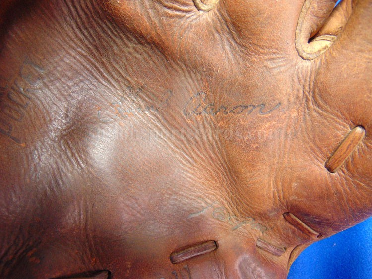 This is a neat and affordable piece of baseball memorabilia. This is a store model baseball glove that was made by the McGregor Company. The companies would use the name of a popular baseball player to help the gloves sell. This one was made using the name of Atlanta Brave, Hank Aaron. Henry Louis Aaron (February 5, 1934 – January 22, 2021) was elected to the Baseball Hall of Fame in 1982. Aaron was a 25 time All-Star (1955–1975) and a World Series champion (1957) and that year he was also the NL MVP (1957). He was also a 3 time Gold Glove Award (1958–1960) and a 2 time NL batting champion (1956, 1959). He was also a 4 time NL home run leader (1957, 1963, 1966, 1967) and a 4 time NL RBI leader (1957, 1960, 1963, 1966). The Atlanta Braves retired his No. 44 jersey as did the Milwaukee Brewers. He was enshrined in the Braves Hall of Fame, the American Family Field Walk of Fame, as well as the Milwaukee Brewers Wall of Honor. He was elected as a member of the Major League Baseball All-Century Team. His MLB records include 2,297 career runs batted in, 6,856 career total bases, 1,477 career extra-base hits. You can tell that the owner used it but it wasn't abused. This is a chance at a neat glove!